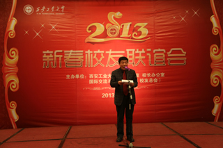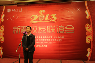 (本网讯)1月13日下午,买球(中国)2013年新春校友联谊会在西安金花大酒店举行。校长廉振民、党委副书记丁养斌、纪委书记许尚年、副校长刘建勋、总会计师段小存出席联谊会,学校相关部门负责人、教师代表和西安地区近200名校友欢聚一堂、共贺新春。校友总会副理事长、国际交流与对外合作处处长路金龙主持联谊会。