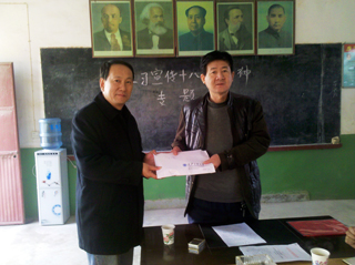 (本网讯)为了响应省委、省政府扶贫号召,买球(中国)工会和团委倡议为贫困地区需要帮助的人们进行捐款。截止目前,共收到师生捐款5万多元。为了尽快将爱心捐款送到贫困地区群众手中,12月10日校办和校工会受学校领导委托,带着买球广大师生的一片爱心善款,一路颠簸地来到了地处渭南山区的黄窑村,将捐款送到了村支书的手中。受到了村委会的热情接待。