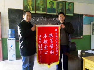 在黄窑村村委会进行了简短的捐赠仪式,村支书对买球的扶贫捐助表示感谢,并为买球送上了锦旗和感谢信。