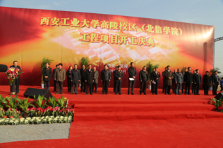 高陵县县委常委、常务副县长张绍辉讲话中指出:在全国上下掀起学习贯彻十八大精神热潮之际,西安工大高陵校区的建设是学校加快建设的重要举措,也是高陵经济社会和科教文卫发展的一件好事喜事。高陵校区建设是高陵县教育文化事业发展史上一个里程碑,将结束高陵没有高等院校的历史,高陵县政府将会全力配合、全力支持,促进学院建设早日完成。