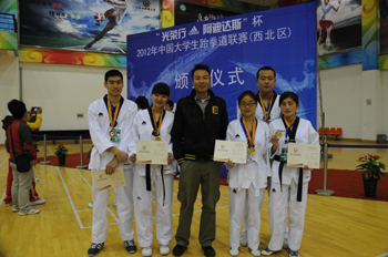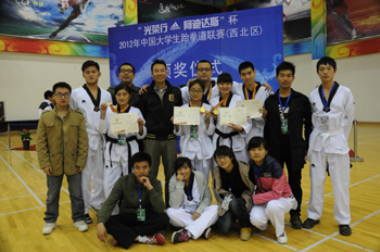 (本网讯)11月5日,“光荣行”阿迪达斯杯2012年中国大学生跆拳道西北区联赛在陕西省西安科技大学体育馆落下帷幕。买球(中国)获得男子团体第四名,女子团体第三名。