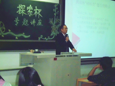 校团委赵伟奇首先就“探索杯” 大学生课外学术科技作品竞赛的立项问题为各参赛团队做反馈说明,指出了在审核立项时参赛团队作品中的突出问题,并为参赛项目的深化提出意见与建议,同时就预拨经费的使用情况给参赛团队提出具体、严格的要求,鼓励参赛人员持之以恒,努力创新,争取优异成绩。接着,教务处刘振亭以材料类报送作品为例,就题目选择、文献查找、文字表达、时间安排等方面为在场的同学做了详细分析与指导,并为参赛团队学生解答疑惑。