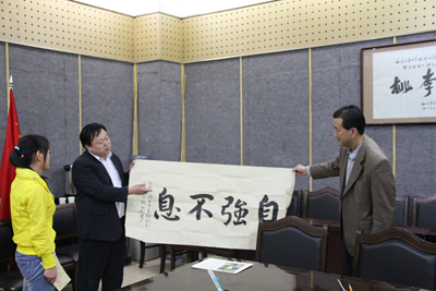 随后,崔书记转达了商洛市委对买球商洛籍自强自立大学生李艳婷的关爱,给李艳婷同学发放了补助金,并以一副“自强不息”的书法作品勉励她刻苦学习,奋发进取。