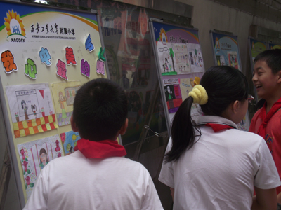 9月7日,“我眼中最美的老师”绘画、作文展,拉开了庆祝教师节的序幕。学生们用画笔把老师在自己心目中最美的样子描画在纸上,学生们的散文、诗歌里融入了对老师浓浓的敬仰和感激之情。9月10日早晨大队辅导员和学生代表为老师们送上了亲手制作的贺卡和节日的祝福。间操时间,“阳光校园”红领巾广播“园丁颂——庆祝教师节”特别节目如期播出,来自各班的学生代表在节目中为老师们送上了真挚的节日祝福,特别节目在全校学生“老师,您辛苦了!”的问候声中结束了。大队部还向学生们提出倡议,引导学生从主动向老师问好做起;从认真听课,认真做作业做起;用实际的行动作为教师节给老师的礼物,用优异的成绩来回报敬爱的老师。