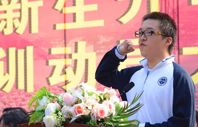 2011级管理信息系学生蒋萧宇代表北信学院全体老生发言。鼓励新生对未来的学业生活要有信心,并以学长的身份提醒新生,进入大学这个新环境一定要注意及时调整自己的心态,用积极的心态适应大学生活。