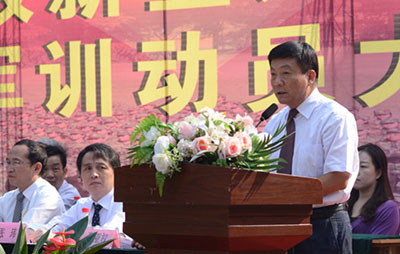 随后杨灏宣布军训团组织结构和人员名单;赛云秀书记为军训团授旗。