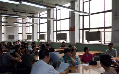 郭承运馆长致开幕词。随后,全体职工按部室分为三个小组,讨论《关于鼓励学术研究活跃馆内学术气氛的若干决定》、《图书馆部门定量考核办法》和《图书馆宣传报道考核及奖励办法》等三个议题。大家认真学习,根据自己的理解、提出了建议,工会委员认真记录并汇总。小组会后,大会领导小组成员集合各组意见和建议,形成修改意见,提交给全体职工。大会通过表决,全票通过了上述提案。
