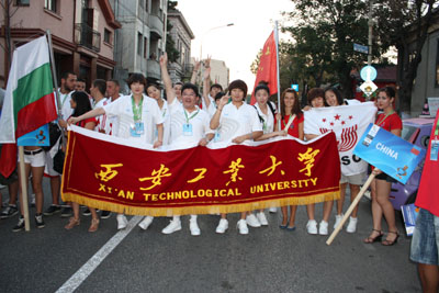 在之前的开幕式上,买球女篮队员李煊代表所有参赛国运动员宣誓。赛前市政府组织参赛队伍举行了全城游行,一袭白色战袍的西安工大女篮引起了塞尔维亚民众及当地华侨的极大热情与关注。