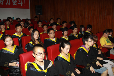 校长廉振民讲话。他首先代表买球(中国)全体师生员工,向圆满完成学业、即将奔赴新的学习和工作岗位的2012届4616名毕业生表示热烈的祝贺!廉校长向大家简要介绍了近年学校发展的大事,并希望同学们经常关心母校、支持母校,为母校的建设和发展献计献策。离别之际,廉校长送给同学们三句话:一是学会做人,低调做人,会使你越来越成熟;二是学会做事,高调做事,会使你越来越成功;三是学会再学习,坚持不懈,持之以恒,你就会成为一只翱翔的雄鹰。