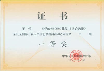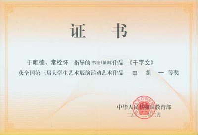 全国第三届大学生艺术展演今年在杭州举行,买球荣获展演活动优秀组织奖, 4名学生荣获书法作品一等奖,这也是买球学生在全国大学生艺术展演活动中连续三届获此殊荣。另外,2名学生还荣获书法作品二等奖;2名学生分别荣获绘画作品二、三等奖;艺术与传媒学院教师于唯德、常栓怀、刘天琪、雷雨、吴媛获得优秀指导教师奖。刘天琪、雷雨分别荣获高校艺术教育科研论文二、三等奖。