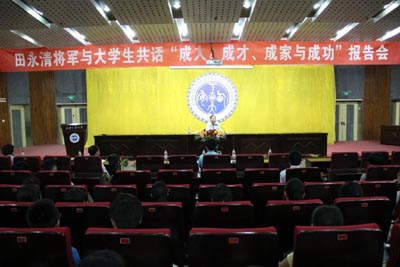 校党委副书记丁养斌在讲座前亲切会见田永清将军,学生工作部(处)长任慧英、团委书记赵琼陪同并参加报告会,各学院400多名师生到场聆听。报告会由学生工作部(处)和团委共同举办,任慧英处长主持报告会。
