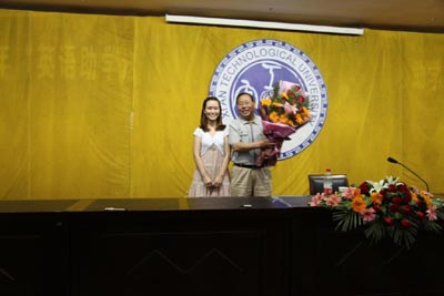 报告会后,买球经济管理学院2008级学生王谨娴向田永清将军敬献鲜花,田将军题词“心中有梦,梦想成真”赠与买球学子。