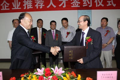 随后,举行了“兼职教授”聘任仪式。首先由艺术与传媒学院院长于唯德介绍于彦忠秘书长简历,并由校党委书记赛云秀向于彦忠秘书长颁发“兼职教授”聘书。双方进行了亲切而友好的交谈,共同探讨校企战略合作的方式,就如何开展校企合作,通过机制创新,推动校企合作向纵深发展,实现校企协调、联动、共赢达成共识。最后由中国企业家思想俱乐部主席团成员、泰安泰山工程机械股份有限公司董事长宋绪山代表俱乐部与艺术与传媒学院签署“联合为企业推荐人才协议书”。