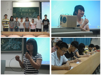 其中的“让科技创新走进生活”创意小发明比赛面向北郊三校同学,主要是让同学用身边的旧电器、旧玩具等废旧物品,运用“声、光、电、磁、机械”等科学原理,制作科技玩具、模型等作品或制作出可以弥补不足与缺陷的小发明,或发明出实用的新型用具,其目的是为了引导和激励大学生崇尚科学、勤奋学习、勇于实践、锐意创新,提高大学生的科研意识和能力,创造不一样的发明,增强实践能力的同时夯实专业基础。