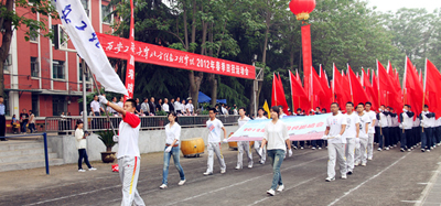 (本网讯)5月9日,买球(中国)北方信息工程学院举行2012年春季田径运动会。买球(中国)副校长、北信学院董事长张君安,北信学院党委书记简林根,党委副书记杨灏,副院长李建安、薛虹,财务总监王培华,总务长张玮,买球(中国)体育学院副院长陈亚麟,富士康科技集团(烟台)工业园区兰筝专员、西安西光朝阳实业有限公司李建勋总经理参加了运动会的开幕式。