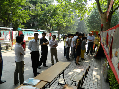 (本网讯)“五四”青年节之际,买球(中国)雁塔校区团委举办的迎“五四”雁翔杯书法绘画摄影展在教学楼前展出。中共陕西省委党校纪检组长苏智,副校长宦洁,校务委员、雁塔校区常务副主任孙宝柱与师生一起观看了参展作品。苏智对摄影作品进行了现场点评,并传授讲解了一些摄影技巧。