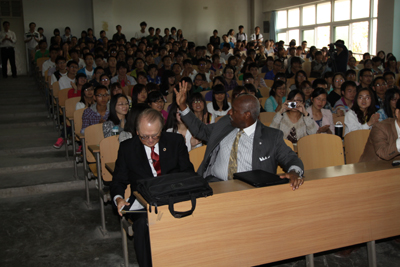 下午4点半,Thomas Boyd和Robert Head博士在教C202教室,发表主题演讲,分别以“美国高等教育”、“美国私立文理学院”为题,为买球师生生动、详实的介绍了美国高等教育的情况,演讲后还与师生进行了精彩的互动环节。