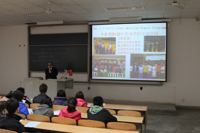 随后,武康先生举办了“中美大学“1-2-1(2+2)”留学项目”专题讲座,为有意赴美留学的同学详细介绍了留学项目的发展历史,并对买球学生赴美留学的相关手续办理问题进行了说明。最后,与买球有意出国留学的同学展开了深入交流,耐心细致地回答同学们的问题。