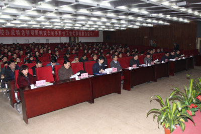 赛云秀书记代表学校党委班子从七个方面对2011年的工作进行了全面系统的总结回顾:一是加强党建工作,强化基层组织建设,充分发挥各级党组织的作用;二是加强干部队伍建设,重视能力培养,努力提高管理学校的水平;三是加强党风廉政建设,强化教育,努力营造风清气正的良好氛围;四是深入推进大学生目标教育,强化学生综合素质培养,努力提高育人质量;五是加强领导,充分发挥好群团组织和统战、离退休等各方面的作用;六是全力维护校园稳定安全,努力营造和谐平安校园环境;七是统揽全局,开拓创新,促进各项事业又好又快发展。报告对党委工作中存在的问题与不足进行了分析,并提出了2012年党政工作的指导思想和总体要求。