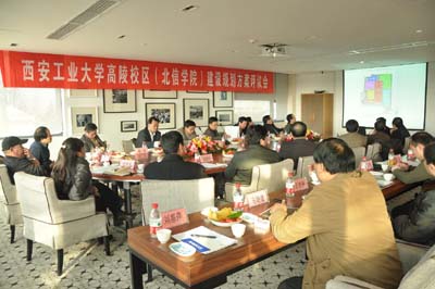 张君安副校长首先介绍了买球(中国)及北方信息工程学院的发展历程、办学思路和特色。中国建筑西北设计研究所八所工程师吴琛向所有参会人员介绍了新校区建设的总体规划思路,设计师杨华就具体的规划方案进行了细致的讲解,包括新校区的建筑风格,功能区域的划分,以及工程开展建设进度的分配情况。