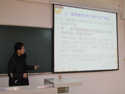(本网讯)为加强教师之间的交流,推动买球(中国)思政部教学、科研水平的进一步提高,展示教师在学术领域的精彩学术观点,思政部特举办 “精彩学术观”学术大讲堂。12月16日,大讲堂第三讲在金花校区6-206教室开讲,由田亮教授主讲题为“全人—高等教育的终极目标”学术报告,思政部全体教师及研究生参加了此次活动。