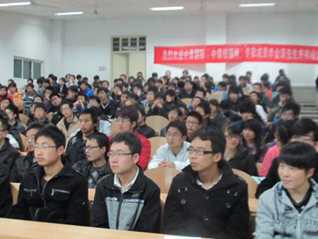 讲座中,李金泽先生和汪楠先生诙谐幽默又蕴含哲理的话语一次次赢得了学生们热烈的掌声。最后,他们祝愿所有同学在大学四年中做好规划,找到自己的人生价值。