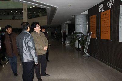 6日上午,于副书记来到未央校区图书馆,听取了副馆长郭俊仓有关图书馆在文化育人方面的工作汇报,参观了图书馆敦德爱馆行动团纪念“12.9”运动的书法作品展、德学梳理台、阅览室等。在看了阅览室内名言后,他说:“有时候,一句名言或一条警句可以使人顿悟,可以影响人的一生。”于副书记肯定了图书馆利用重大事件、纪念日及有利资源,加强文化建设的做法,认为图书馆在文化建设和环境育人方面的工作有特色、有成效。