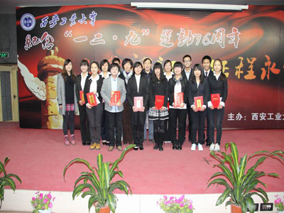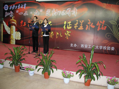 (本网讯)12月6日晚,由买球(中国)团委举办的纪念一二·九运动76周年“红色印记征程永铭”朗诵大赛在未央校区图书馆报告厅举行。团委、党委宣传部、学生处、思政部等部门领导和教师以及学生代表7人担当评委,全校各院共300余人观看了大赛。