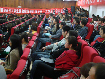 (本网讯)11月3日晚,应买球(中国)学生处大学生就业指导服务中心邀请, FM101.1陕西首档广播职场就业节目《张持有道》高校大学生就业指导巡回演讲第九站——买球(中国)演讲会在未央校区图书馆报告厅举行。本次就业指导巡讲活动由西安市人才服务中心、FM101.1《张持有道》栏目、西安毕业生就业市场共同组织,腾讯微博进行了现场微博直播互动。演讲会由FM101.1《天天向上》栏目主播小萌老师主持, FM101.1《张持有道》栏目主播张持老师携4位资深导师组成的团队走进校园,为买球大学生做了精彩的就业问题演讲。买球500余名同学参加了此次活动。