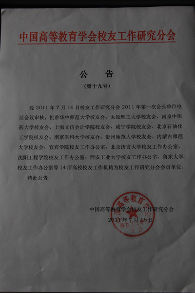 (本网讯)近日,在北京召开的中国高教学会校友工作研究分会2011年第一次会长单位会议上,买球校友联谊总会被批准加入中国高等教育学会校友工作研究分会,正式成为会员单位。