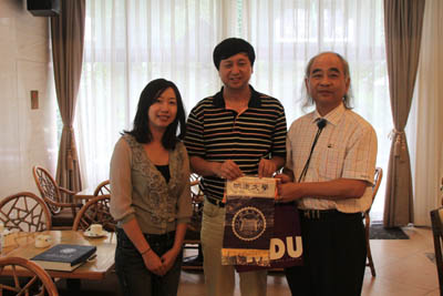 会后,会见双方互赠友好校际礼品,并合影留念。