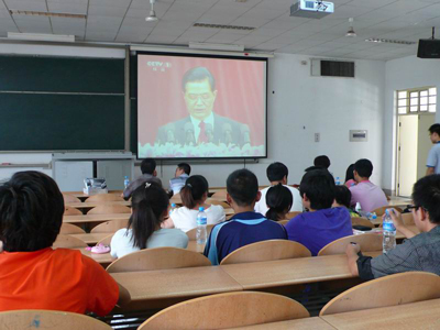 (本网讯)7月1日上午,庆祝中国共产党成立90周年大会在人民大会堂隆重召开,校团委组织教工团干部和部分团员青年在未央校区教C104教室共同观看了庆祝大会的电视直播,聆听了中共中央总书记胡锦涛在大会上发表的重要讲话。