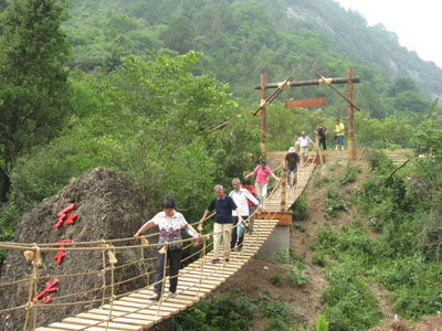 为了更深切地体验当年革命根据地艰苦卓绝的战斗和生活,重温革命精神,接受更加深刻的教育。离开照金纪念馆之后,老同志们又来到红军兵营薛家寨。1933年,历史上有名的薛家寨保卫战就在此发生。这里层峦叠嶂,林密如海,中心地带壁立千仞,地势十分险峻。山寨形似葫芦,东南西三面为悬崖绝壁,山坡灌木丛生,仰视不见寨形,细看仅见草丛小道。整座山寨走势雄奇,军事上易守难攻。当年红军生活和战斗痕迹依稀可见。大家分别参观了陕甘边游击队驻地,红军的被服厂、修械所、红军医院及领导机关驻地等旧址。