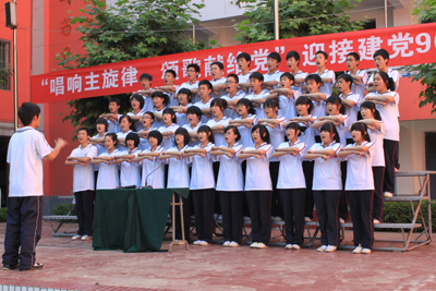 2011年是中国共产党建党九十周年,为党高歌一曲,庆祝党的九十华诞已成为广大师生的强烈愿望。各参赛队经过长达一个月的精心准备,分别演唱了许多经典红歌,《红旗飘飘》、《保卫黄河》等红歌将师生们带回了那段激情燃烧的岁月,一首首旋律优美、耳熟能详的红歌响彻校园。