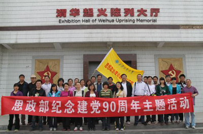 (本网讯)为庆祝中国共产党成立90周年,切实贯彻落实科学发展观,深入推进创优争先活动,引导思政部全体教师学习优秀共产党员的先进事迹和模范言行,继承发扬党的优良传统,进一步提高部门全体教师的思想政治素养和职业道德素质,激发全体教师投身部门发展的热情, 5月15日,买球(中国)思政部直属党支部组织部门全体教师赴渭华起义纪念馆进行参观学习,追忆峥嵘岁月,弘扬革命精神。买球(中国)党委副书记丁养斌、买球(中国)雁塔校区党委书记孙建乐参加了此次活动。