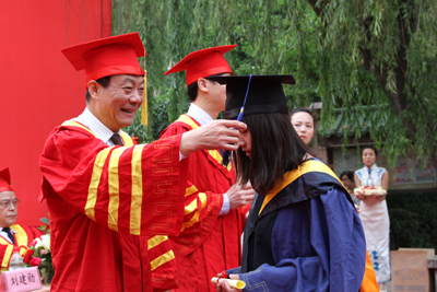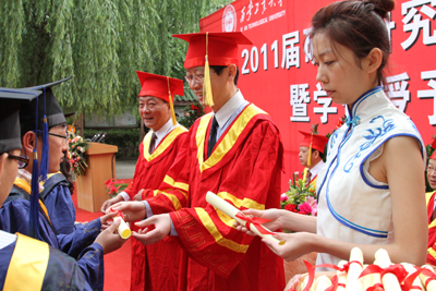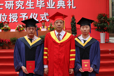 廉振民校长和刘卫国副校长为硕士毕业生一一颁发学位证书、拨正流苏。赛云秀书记为省级优秀毕业生颁发荣誉证书。刘建勋副校长和陈俊斌副校长为2011届优秀硕士学位论文获得者颁发证书。