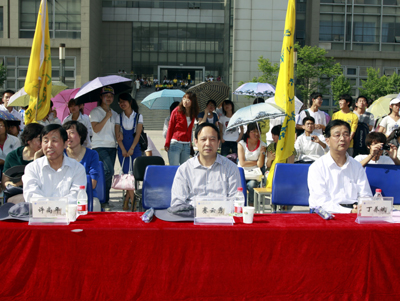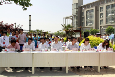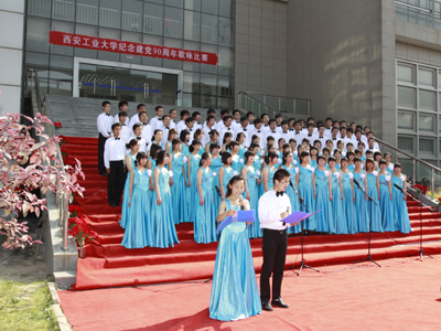 (本网讯)5月4日,由校团委、校工会联合举办的纪念建党90周年系列活动之一,“唱一首好歌”— —纪念建党90周年歌咏比赛在买球(中国)未央校区AD楼广场举行。校党委书记赛云秀、校党委副书记丁养斌、校纪委书记许尚年与各院系分党委(党总支)书记、副书记、教师代表及1000余名学生共同观看了比赛。党委宣传部部长李金钢、宣传部教师胡衍、统战部部长王大明、校工会副主席朱晋中、校团委宣传部部长赵伟奇及两名学生代表共7人担任本次比赛的评委。