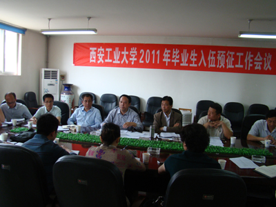 (本网讯)5月5日,西安工大召开2011年毕业生入伍预征及就业教育工作会议。党委书记赛云秀、党委副书记丁养斌出席会议。学生处、武装部、财务处相关人员,各院(系)党委(党总支)书记和毕业班辅导员参加了会议。会议由学生处副处长赵贵波主持。