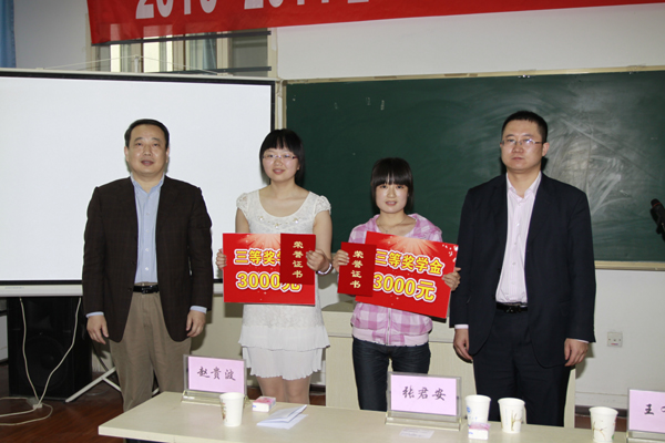 仪式由学生处副处长赵贵波主持。王有军副总经理在会上宣读了表彰决定并介绍了奖学金设立情况。张君安副校长和王有军副总经理为获奖学生颁发了奖金和证书。