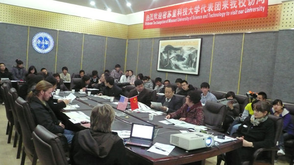 张君安副校长会见了美国密苏里科技大学代表团一行。教务处、数理系、电信学院、材化学院、建工学院、机电学院等院系领导参加了会见。大家分别就买球与密苏里科技大学在友好合作关系的基础上如何开展“2+2”和“3+1”项目及互派访问学者等合作的协议细节进行了深入的探讨,双方达成了共识。Ms.Roberta Morgan女士还面向相关院系的学生代表做了有关密苏里科技大学的介绍以及该校2011年本科、硕士专业招生计划,包括申请条件、程序、时间以及奖学金等情况的说明, 并详尽地回答了同学们感兴趣的问题。