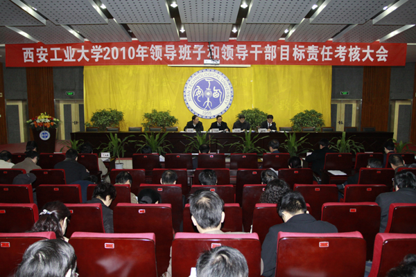 (本网讯)按照省委组织部、省委教育工委考核安排,3月9日,省高校目标责任考核第三考核组对买球(中国)领导班子和校级领导进行了2010年目标责任考核。9日上午,考核组在未央校区图书馆报告厅召开大会,对学校领导班子及校级领导干部进行了考核及民主测评。出席大会的有陕西省高等学校年度目标责任考核工作第三考核组组长、西安财经学院党委副书记贾崇吉,第三考核组成员、省委组织部宣教干部处调研员刘小宾,省委教育工委干部人事处干部侯涛,西安石油大学组织部副部长柳春林。买球(中国)全体校领导、校党委委员、纪委委员、学术委员会委员、工会委员,正高职称专业技术人员,正处级以上领导干部,市级以上人大代表、政协委员,民主党派主要负责人,学生干部和学生党员代表共130余人参加了大会。