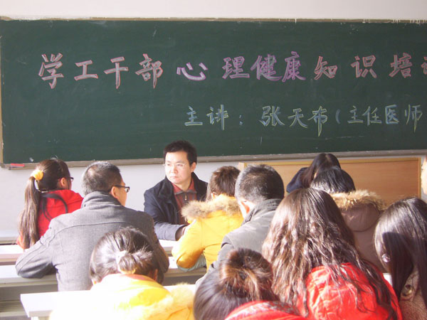 张天布医师以各院系学工干部提供的学生个案为例,深入分析了大学生的心理现状和严重心理问题,主要包括焦虑、抑郁、神经衰弱、轻生这四种情况的成因,提出了对重点学生进行心理辅导和危机干预的工作模式和工作策略。张老师运用严谨、翔实、生动的语言,分别对个案的诊断、评估和咨询进行了系统地讲解,他指出:在心理辅导时,首先要共情地理解大学生现阶段出现的心理特点;其次要善于倾听学生的心里话,启发学生,增强学生对所处环境的正向强化和觉察积极事件的敏感度;最后阐释了实施新生环境适应工作的必要性以及进行学生个案干预和研究的重要意义。