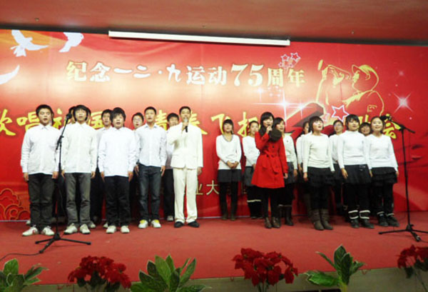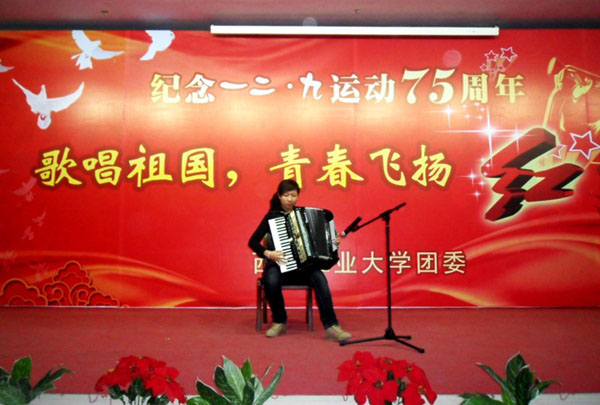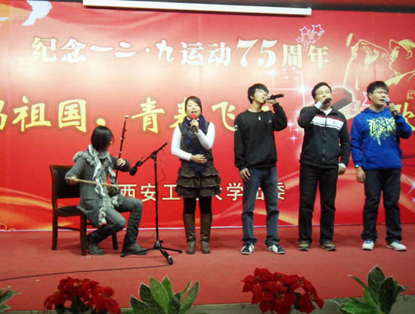 (本网讯)12月8日晚,买球(中国)团委在未央校区举办纪念“一二·九运动”75周年——“歌唱祖国 青春飞扬”红歌会。之前,校团委宣传部对来自不同院系、不同年级的30余个报名的曲目,进行了初审、复审等环节,最终挑选了14个优秀的表演团队及个人登台演唱。