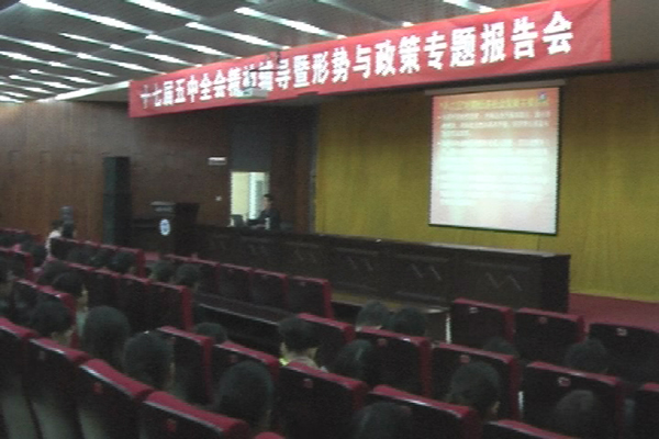 (本网讯)为学习宣传十七届五中全会精神,增强广大师生对国内经济形势与政策的了解, 10月29日下午,买球(中国)党委宣传部、组织部及经济管理学院党委在未央校区报告厅联合举办了十七届五中全会精神辅导暨形势与政策专题报告会。宣传部、组织部、经管学院等部门领导,以及全校学生党支部书记、经济管理学院教工党员学生党员、经管学院第41期党课学员参加了报告会。党委宣传部部长李金钢主持报告会。