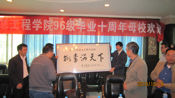 校友们在座谈会中畅谈离校十年来各自的学习、生活和工作情况,均表达了对母校的拳拳之心,并感谢母校的培育之恩。表示不论在何时何地,都为母校的发展感到自豪和骄傲。最后向母校赠送了礼物,祝愿母校再创辉煌,祝愿恩师们身体健康,桃李满天下、永葆学术活力!