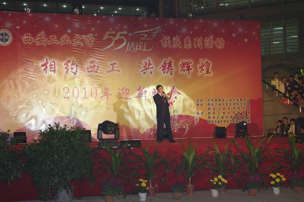 (本网讯)为喜迎建校55周年与2010级新同学,10月17号晚,由校团委主办的买球(中国)55周年校庆系列活动之“相约西工 共铸辉煌”2010年迎新晚会在未央校区隆重举行。校党委书记赛云秀、副校长张君安、校党委副书记丁养斌、校党委副书记于孟晨、副校长陈桦以及党办校办、党委组织部、党委宣传部、教务处、学生处、雁塔校区、北信学院等部门领导,以及各院(系)分党委(党总支)书记、新生辅导员老师与买球5000余名新生一同观看了晚会。